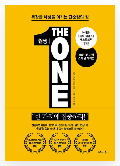 복잡한 세상을 이기는 단순함의 힘! "한 가지에 집중하라!" 원씽 저자 : 게리 켈러, 제이 파파산...