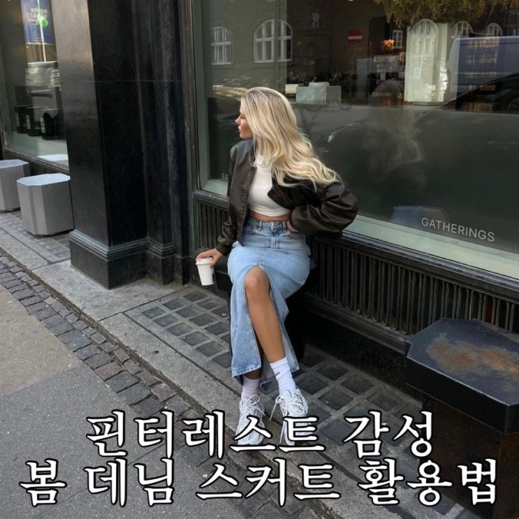 패션 인플루언서 환희N딩 입니다. 핀터레스트 감성 봄 데님 스커트 활용법 겨울의 끝자락, 슬슬 봄을 준비...