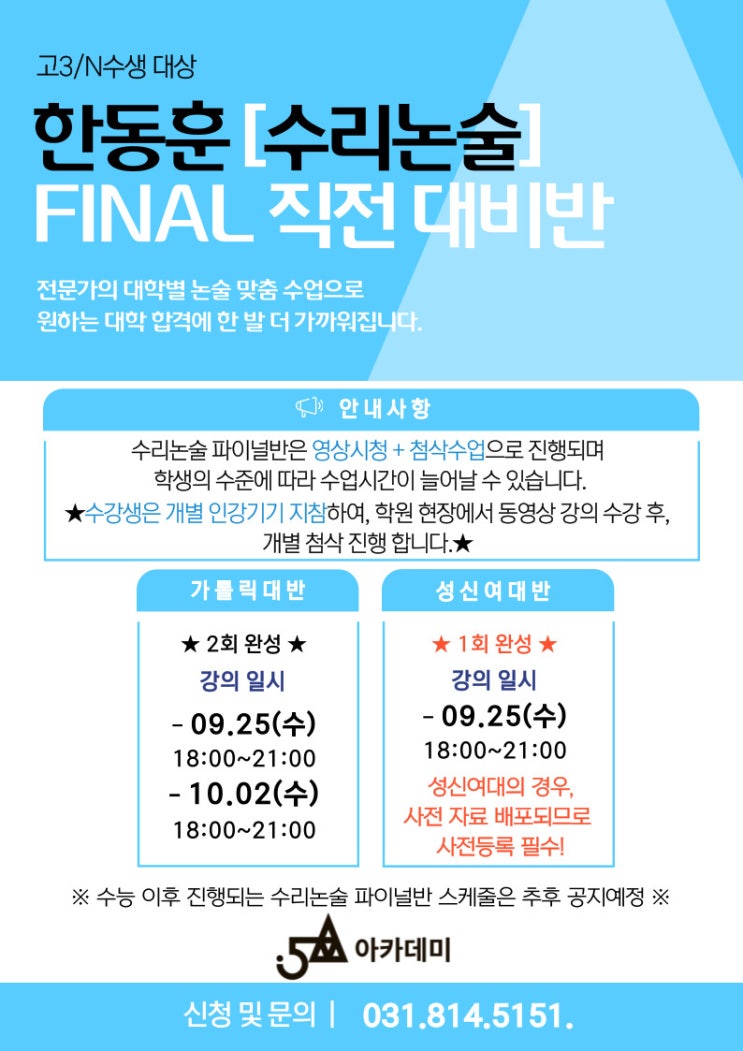 [5A아카데미] 수리논술 수시 파이널 직전대비반 강좌 안내 (가톨릭대, 성신여대)