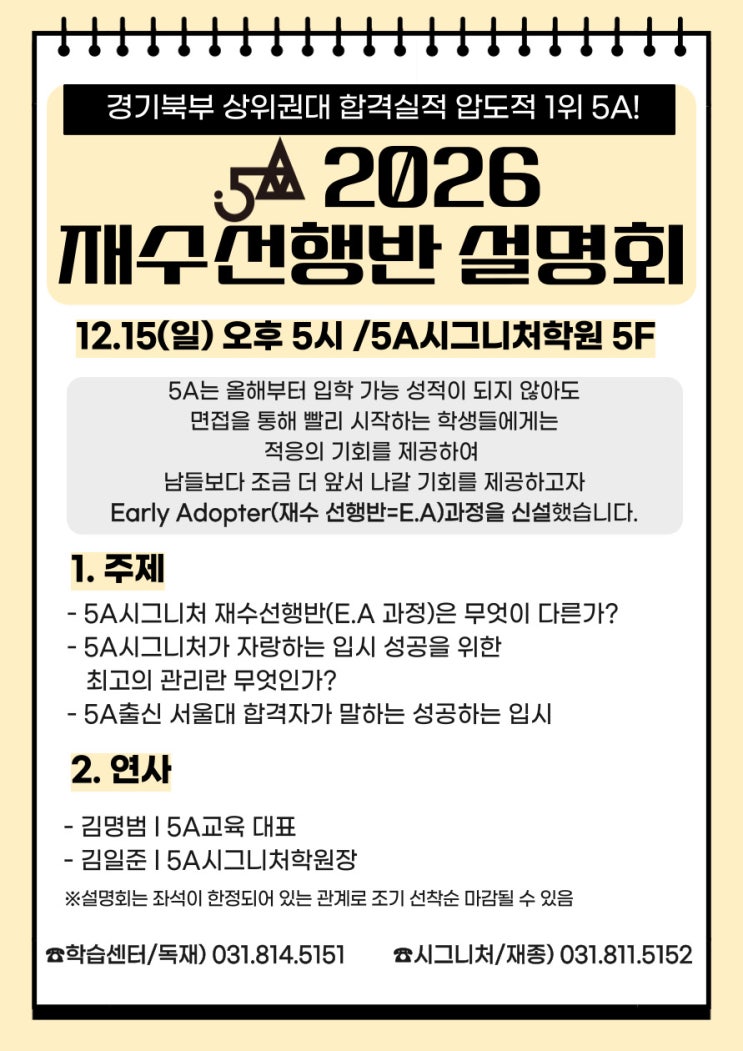 [5A시그니처] 2026 재수선행반 설명회 - 12.15(일) 오후 5시