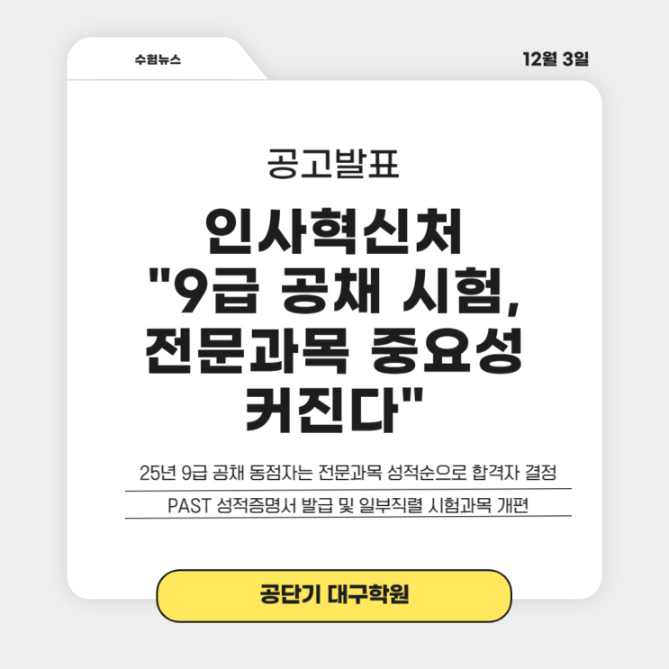 ? 2025년부터 9급 공무원 시험에서 전문과목이 더욱 중요해진대요! (동점자 처리방식 변경) 대구공무원학원