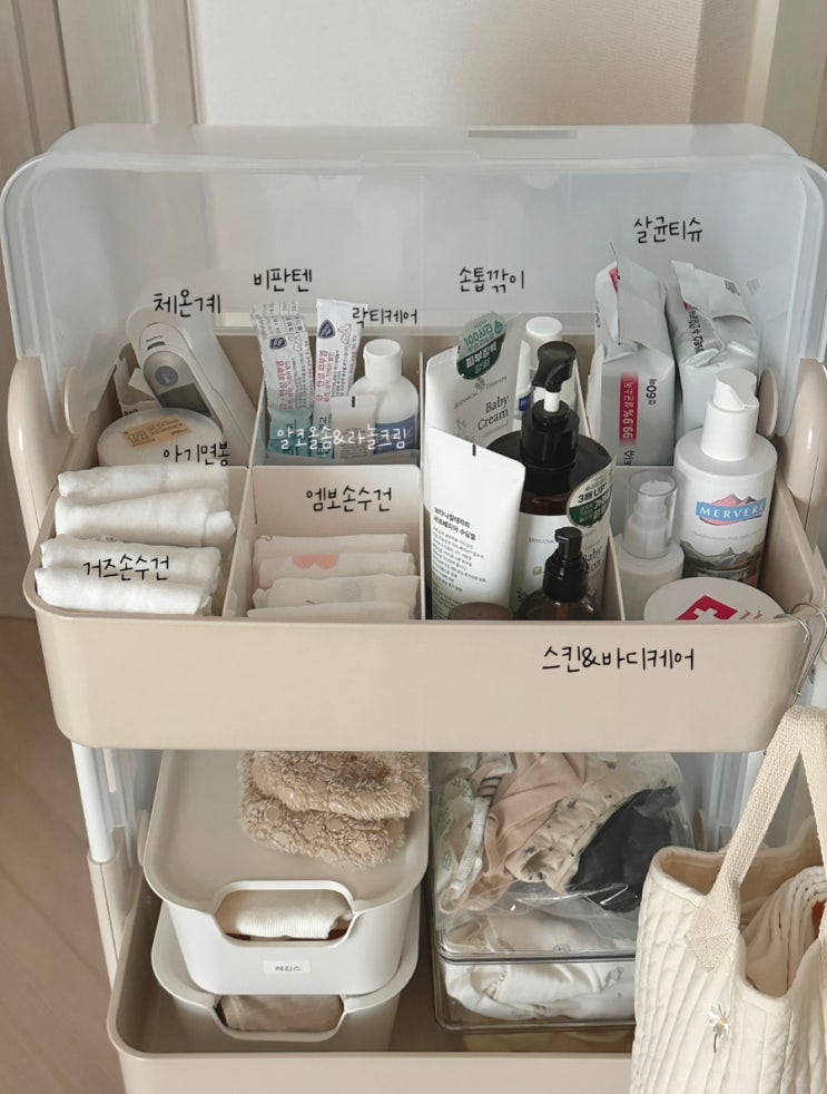 뉴코코맘 기저귀정리함 뚜껑 있는 트롤리 정리 팁 아기 하나 키우는데 필요한 짐이 뭐가 이렇게 많은지 몰...