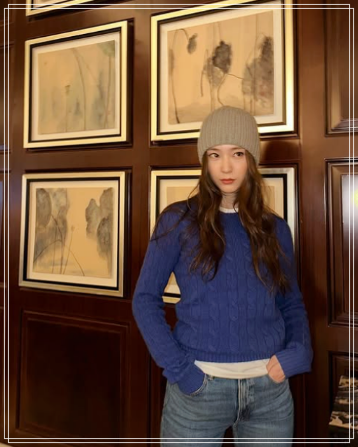 정수정 폴로 랄프로렌 케이블 니트 꾸안꾸의 정석