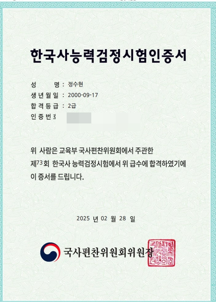 [자격증] 73회 한능검 2급 턱걸이 하게 된 썰 풉니다.