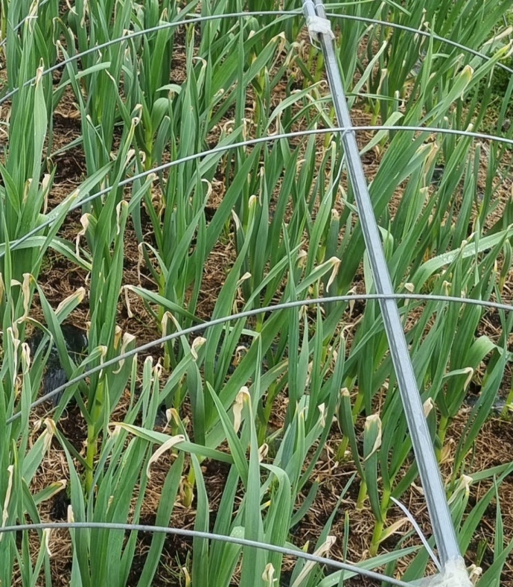 텃밭 입구에 차를 주차해 놓고 차에 서 내리면 가장 먼저 마늘이 주인을 반겨 줍니다. 마늘잎이 마르는걸 ...
