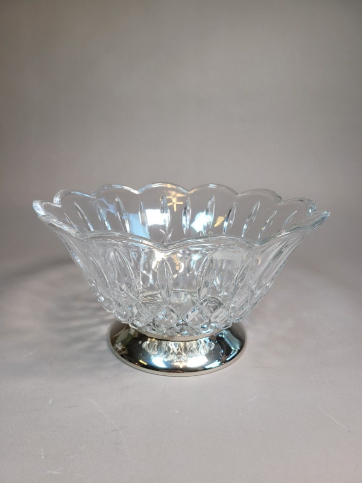 실버플레이트 굽이 있는 크리스탈 샐러드볼이에요 사이즈 큼직합니다 앤틱한 분위기가 예뻐요 상태 양호해...