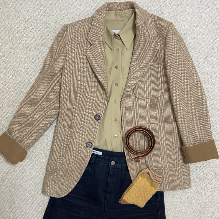 (러블리영 내일뭐입지) 봄비오는 날 차분한 웜톤코디(자켓+셔츠+데님)