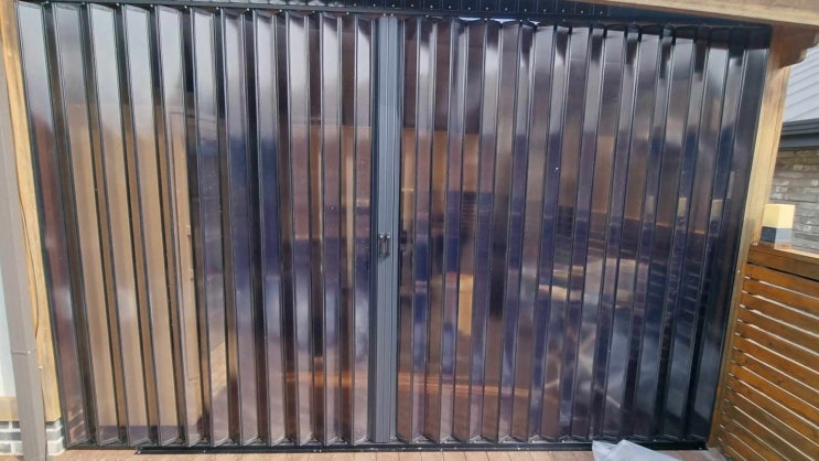 수동 전원주택 데크바람막이 자바라를 설치해 드렸습니다.