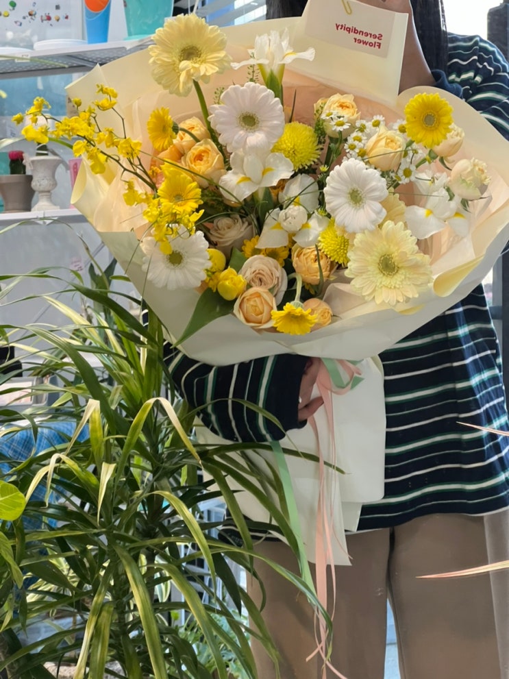 창원꽃집추천 / 진해 부모님 선물 꽃다발 / 첫인사 노랑 대형 꽃다발 세렌디피티플라워 꽃다발 500