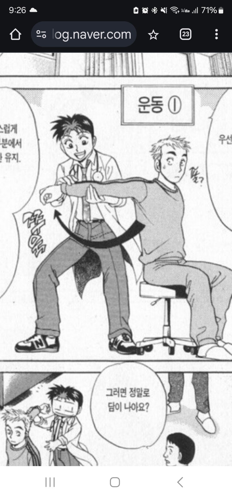 인터넷에 만화로 많이 돌아다니는 목에 담 걸렸을때 푸는 법 만화중 일부~ 한참전에 남해의 어느 찜질방에...