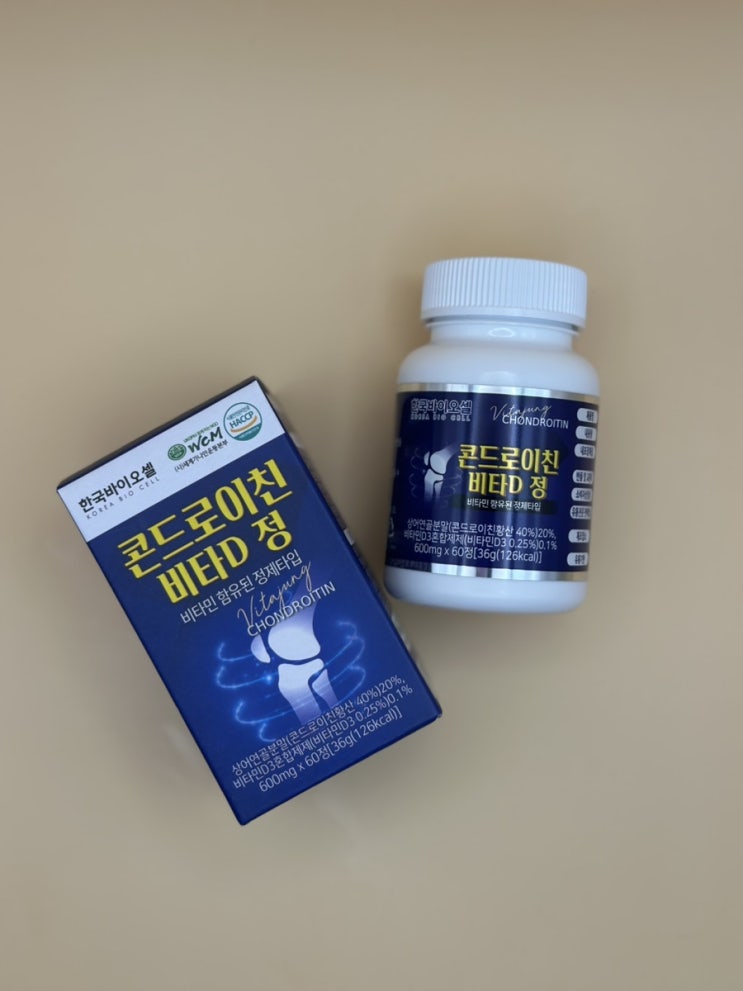 안녕하세요. 리아입니다! 오늘은 요즘 핫한 상어연골 콘드로이친 제품, 한국바이오셀 콘드로이친 비타D정...
