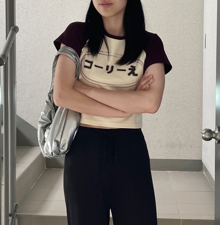 브랜드 꼬리에(ccorie)퀄리티 높은 레글런 크롭 반팔티로 캐쥬얼 데일리룩 완성