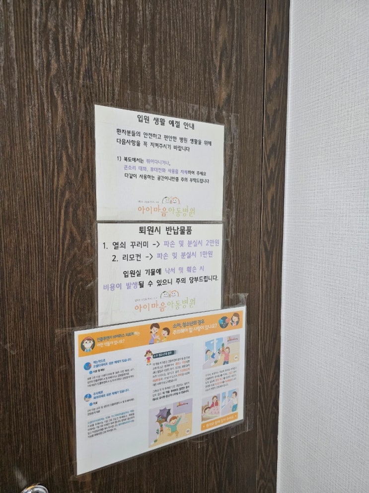 울산 북구 아이마음 아동병원 21개월 수족구 입원 준비물 및 식사 그리고 보험서류