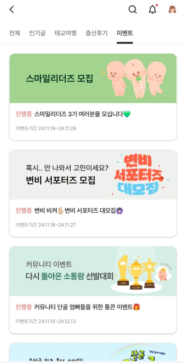 임신부어플 스마일리더 소통왕 선발대회 어플 이벤트 참여하기