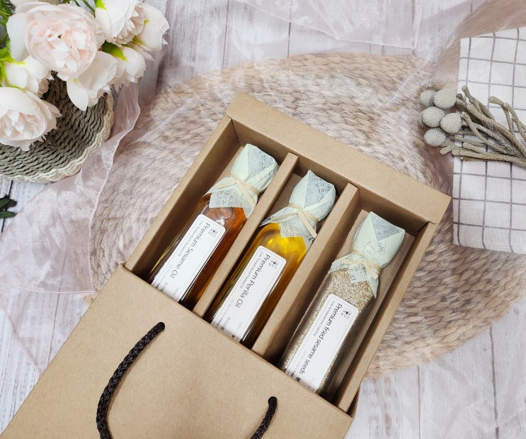 결혼 답례선물이다보니 받았을 때 활용도가 뛰어나면서도 오래도록 기억에 남는 답례품이면 좋겠죠? 참기름...