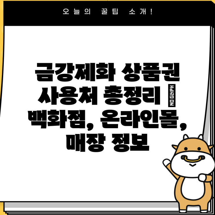 금강제화 상품권 사용처 총정리 | 백화점, 온라인몰, 매장 정보 ## 금강제화 상품권 사용처 총정리 | 백화...
