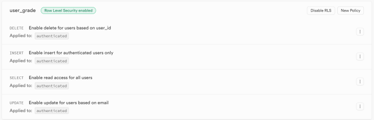 목차 supabase 퀴즈 테이블 설정 퀴즈 목록 select, insert, update, delete supabase 퀴즈 테이블 설정 퀴...