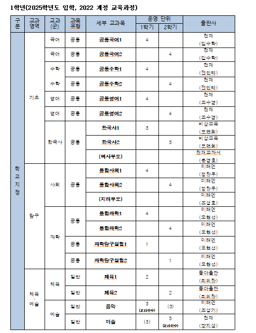 2025 선화예중 교과서 목록