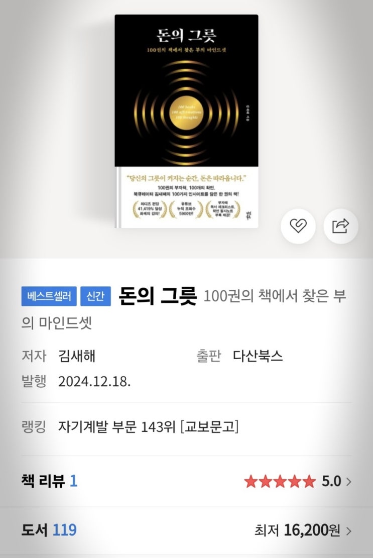 100권의 책에서 찾은 부의 마인드셋 《돈의 그릇》/ 김새해