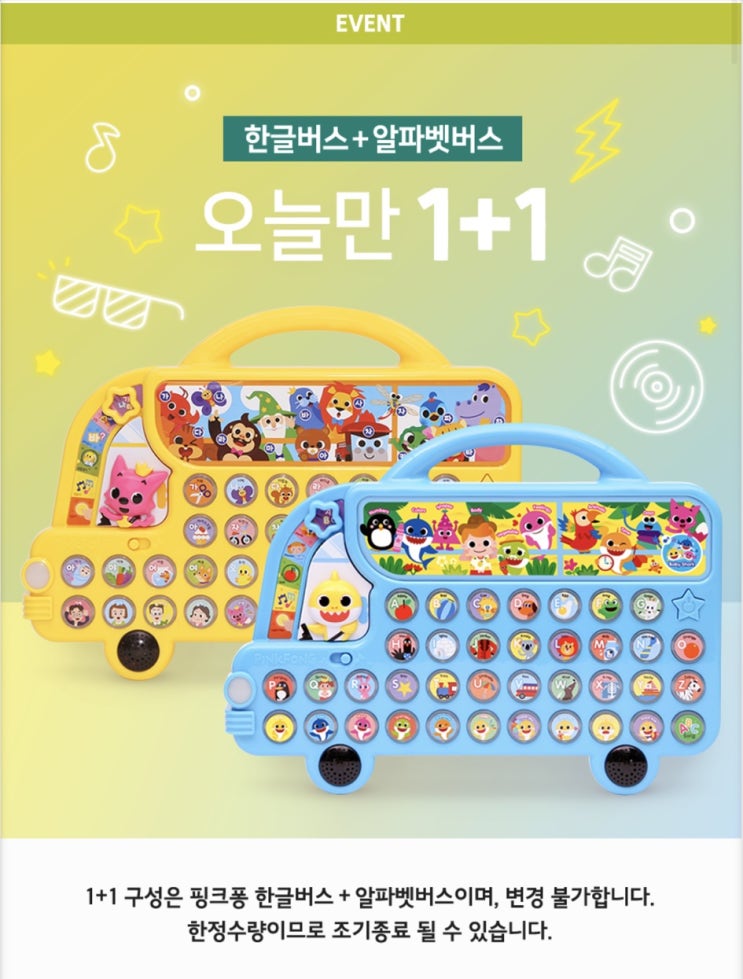 1/25 핑크퐁 스토어 50% 할인 이벤트 (한글버스 + 알파벳버스, 스티커, 마이크 외)