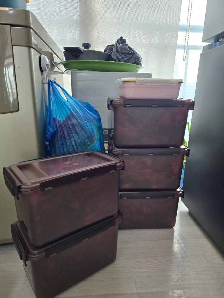 일상 김장김치담기. 뒤치닥거리라고 잘하자:)