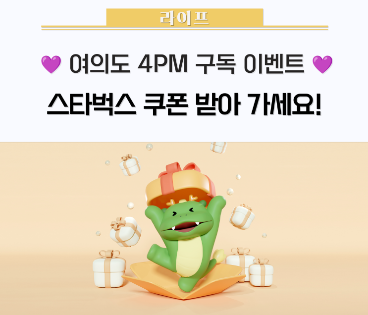 [이벤트 알림] 여의도 4PM 구독하고 스타벅스 커피 받아가세요? // 유튜브구독이벤트,스타벅스기프티콘이벤트