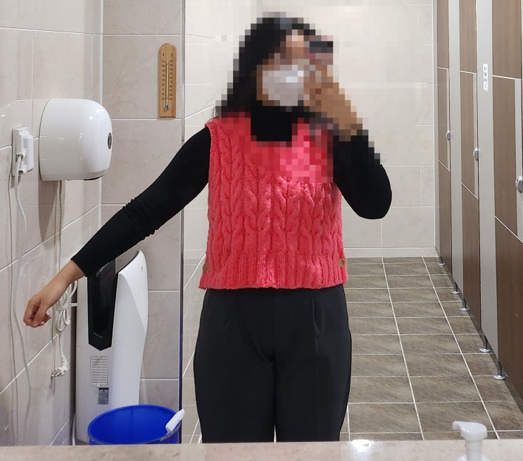 의류로 만든 두번째 작품 완성~ 보송니트의 하트 꽈배기 도안 조끼를 구매했다 같은 디자인으로 가디건이랑...