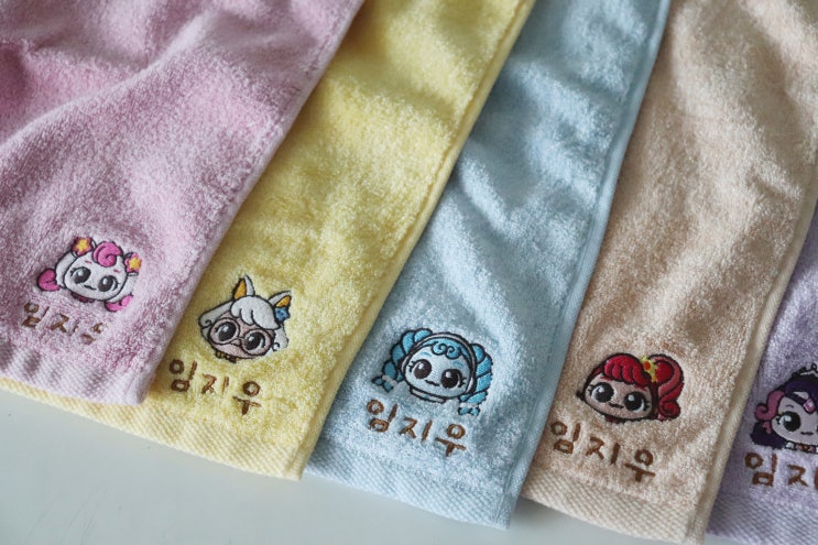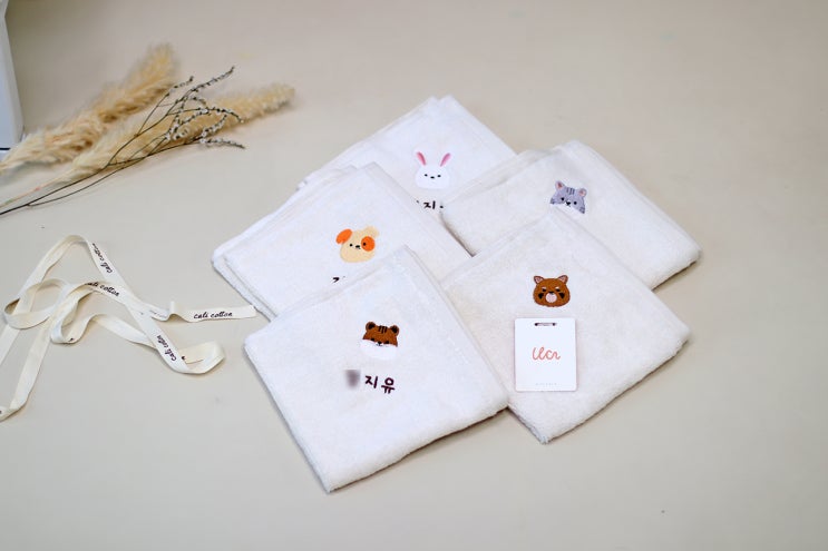 자수손수건 어린이집 고리수건 고급 오가닉 리틀캘리 수건