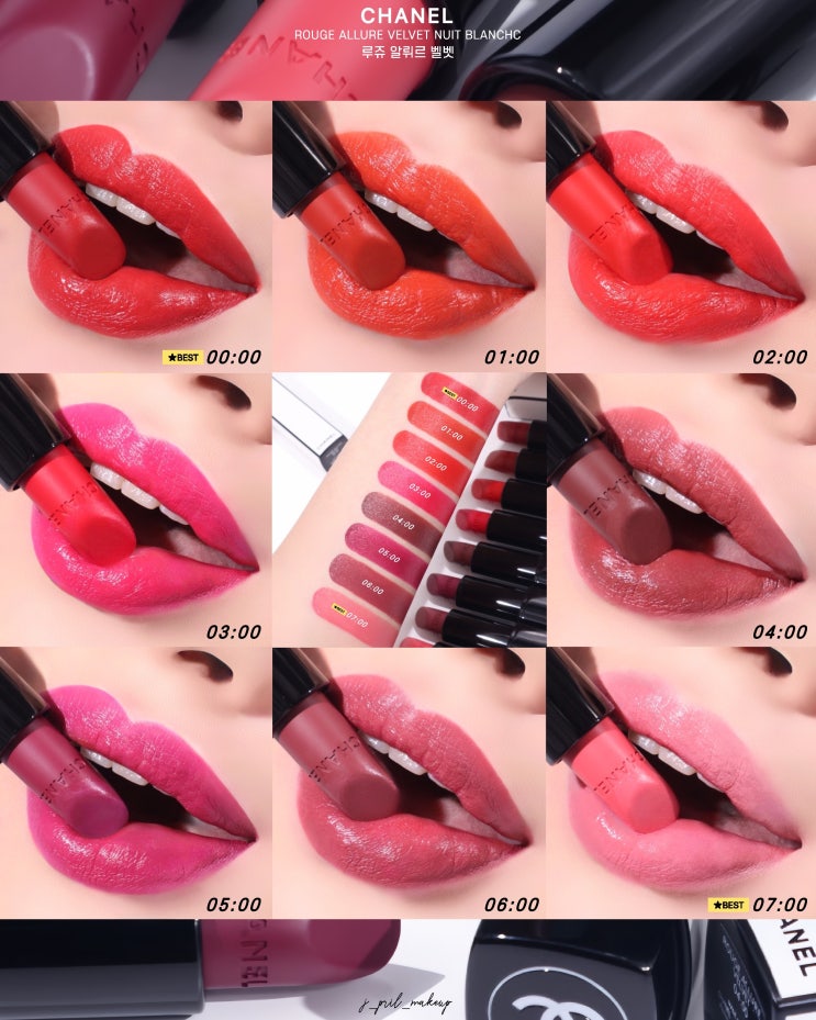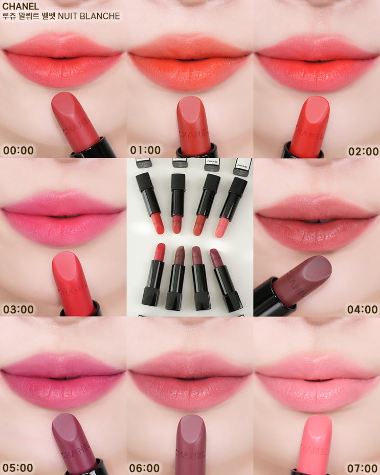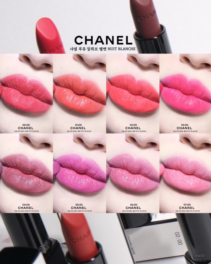 샤넬 뷰티 루쥬 알뤼르 벨벳 뉘블랑쉬 립스틱 추천, 전색상 발색&메이크업