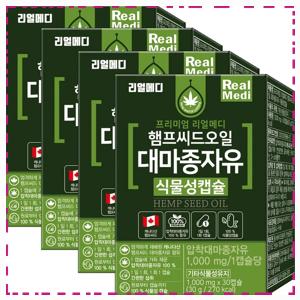 리얼메디 햄프씨드오일 대마종자유 식물성캡슐 압착대마종자유 오일 캡슐 햄프씨드 햄프시드, 4개, 30정 가...