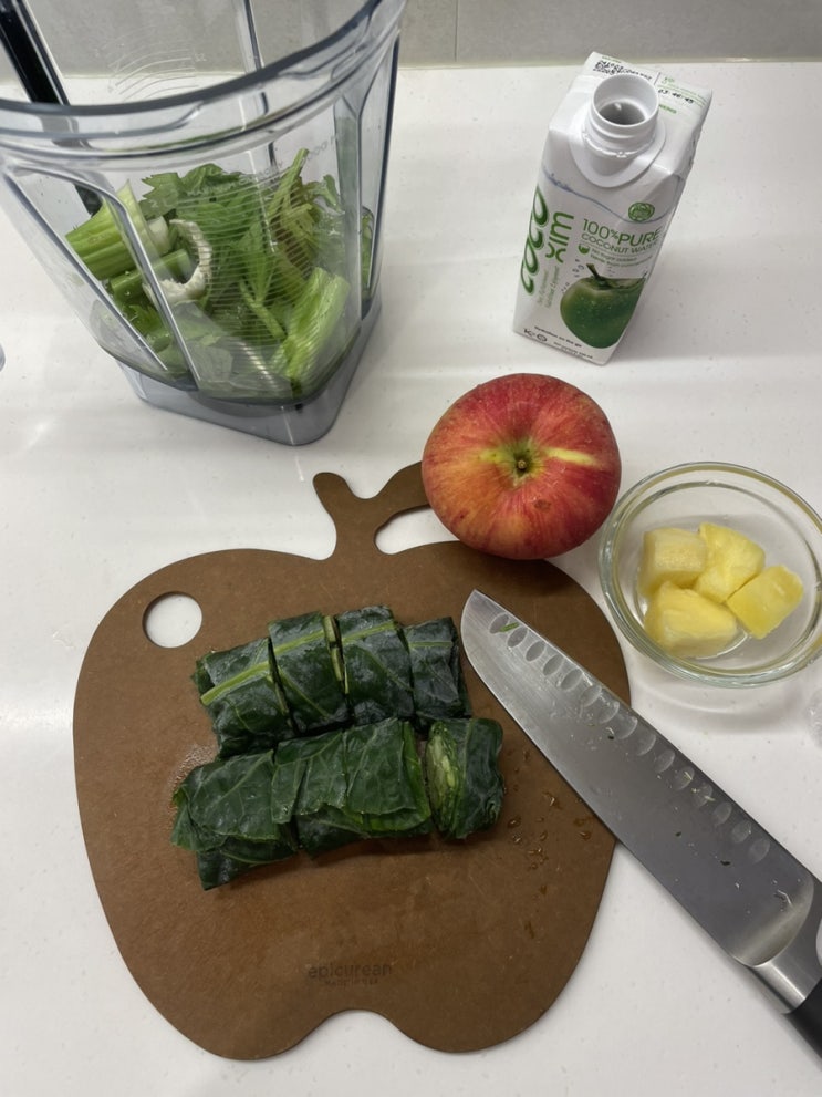 나의 평생 숙제 다.이.어.트 요즘 몸이 말이 아니다 싶어 아침마다 한잔씩 그린스무디 귀여운 사과도마 #에...