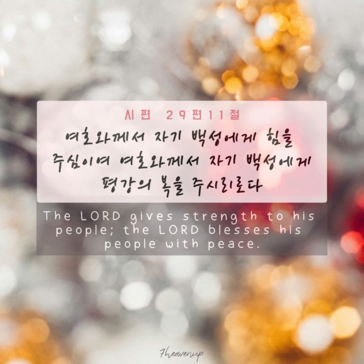 시편 29편 11절 ? [개역개정, NIV] 여호와께서 자기 백성에게 힘을 주심이여 여호와께서 자기백성에...