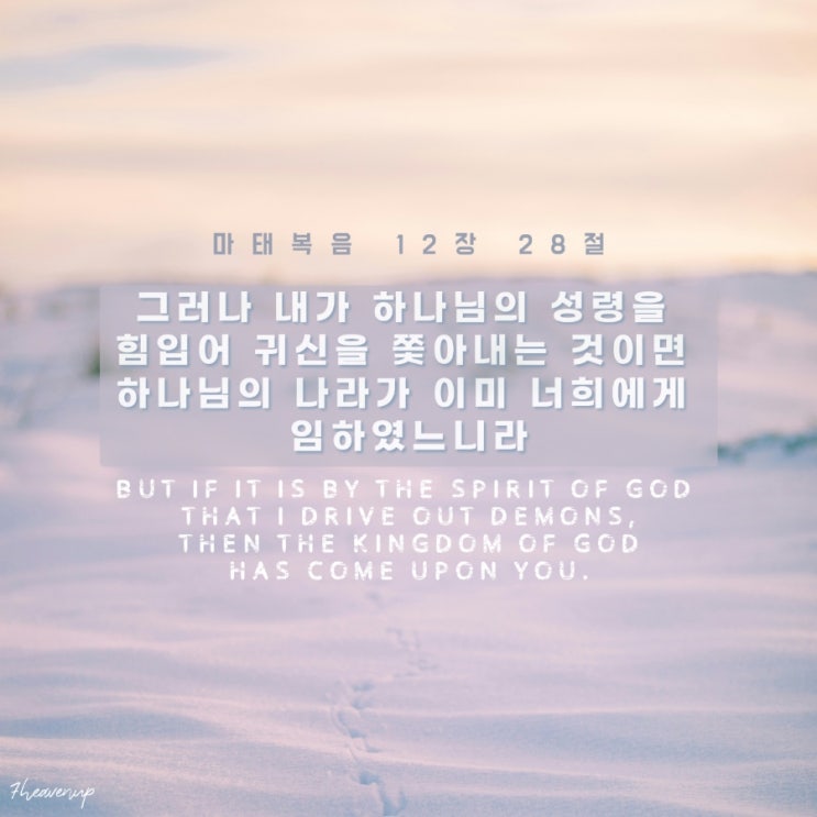 마태복음 12장 28절 ? [개역개정, NIV] 그러나 내가 하나님의 성령을 힘입어 귀신을 쫓아내는 것이면...