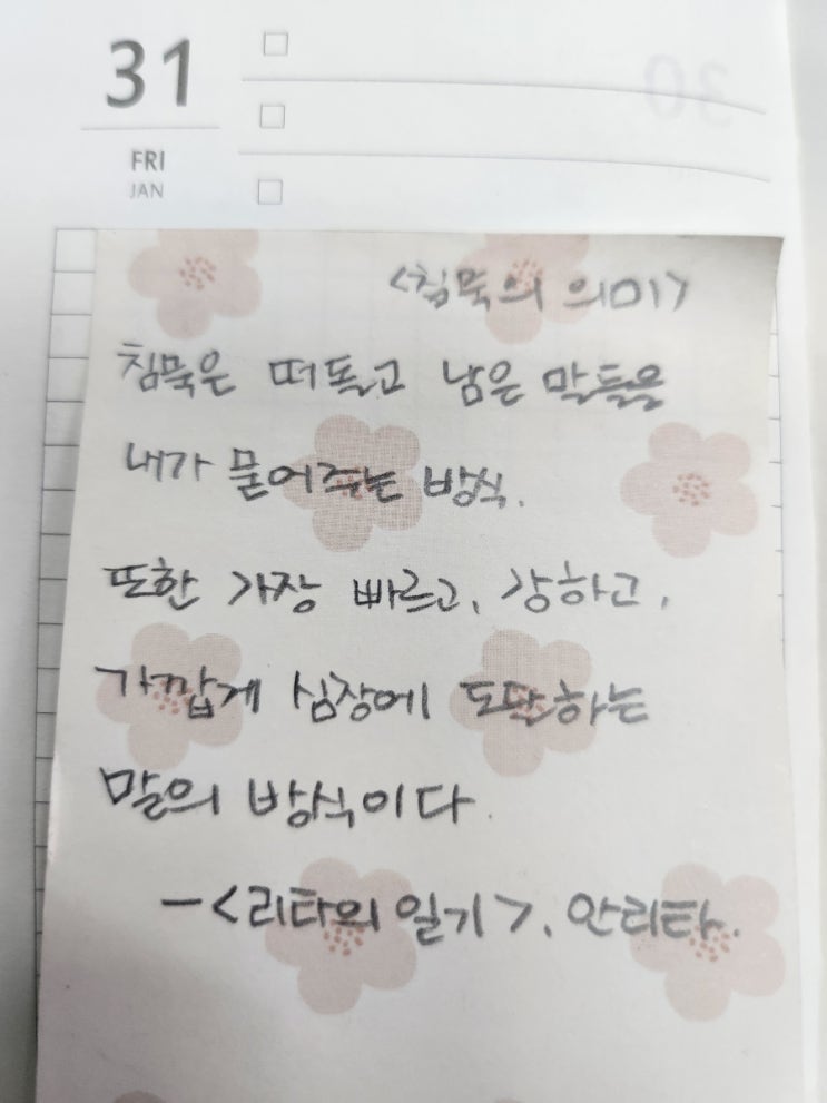 아침에 필사 문장을 받으면 우선 문장을 음미해요.. 그 문장이 오늘 나에게 주는 의미가 무엇일지... 나는 ...