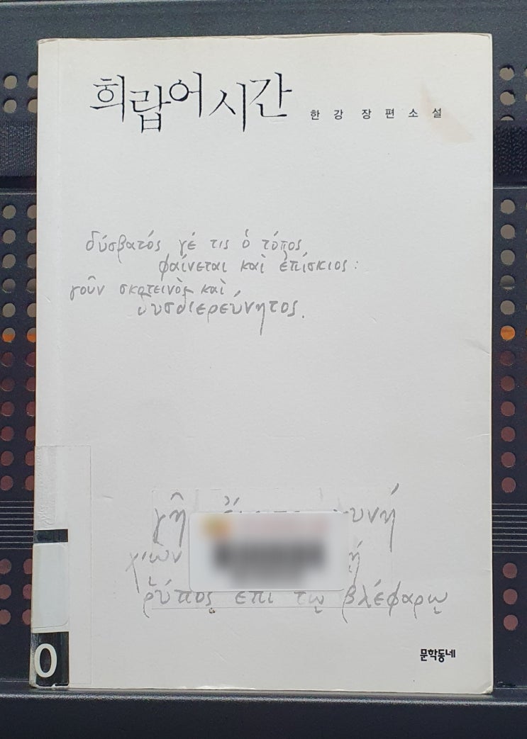 한강 작가의 장편소설 『희랍어 시간』 말을 잃어가는 한 여자의 침묵과 눈을 잃어가는 한 남자의 빛이 만...