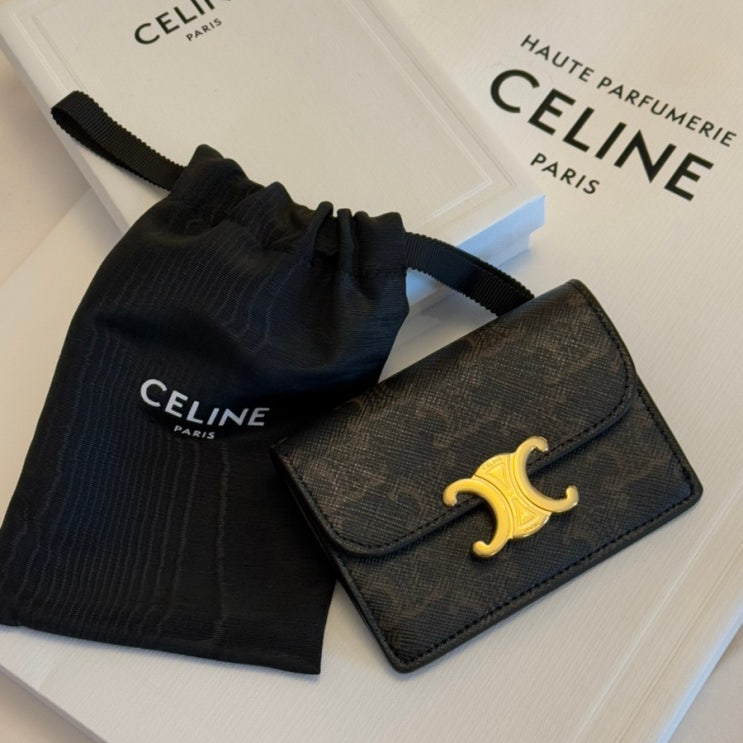 [셀린느] 트리옹프 명함지갑 캔버스 & 램스킨 거싯 수납공간 2개 플랫 포켓 1개 신용 카드 슬롯 3개 안...