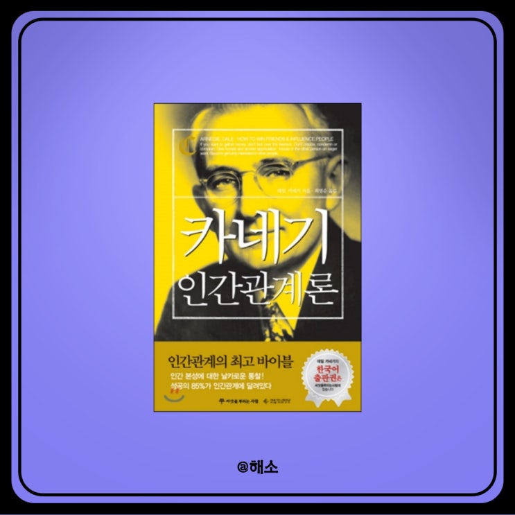 안녕하세요. 해소입니다. 오늘은 제가 10번 넘게 읽은 책, 자기 계발의 바이블, 데일 카네기의 <인간 관...