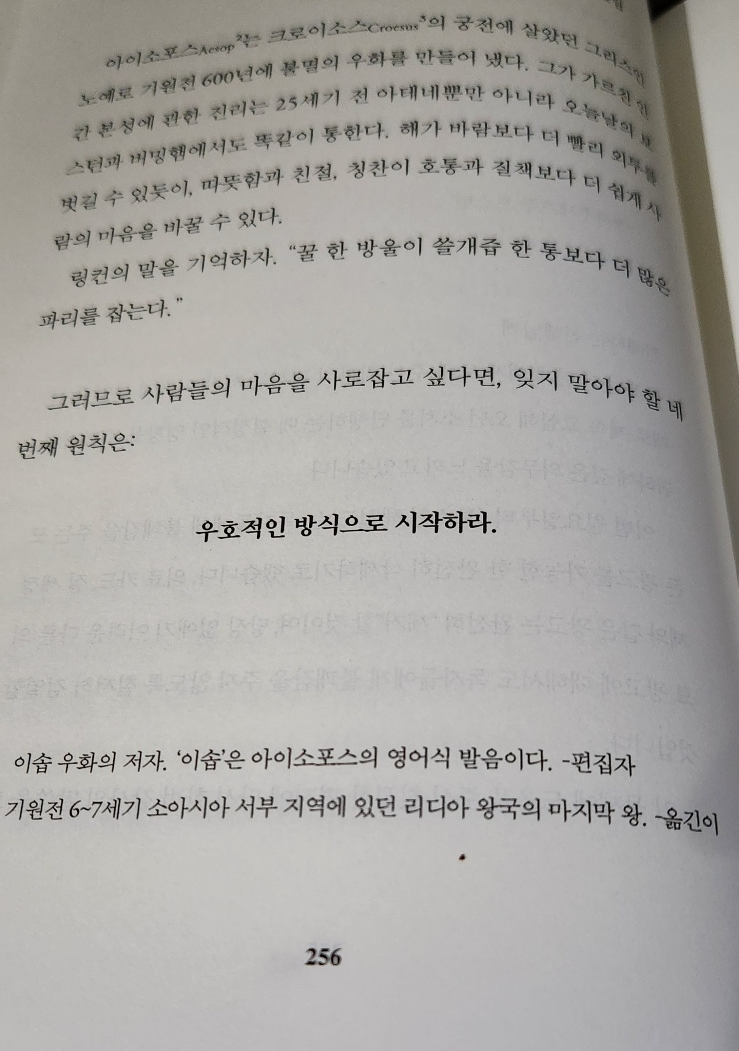 그러므로 사람들의 마음을 사로잡고 싶다면, 잊지 말아야 할 네 번째 원칙은: 우호적인 방식으로 시작하라 ...