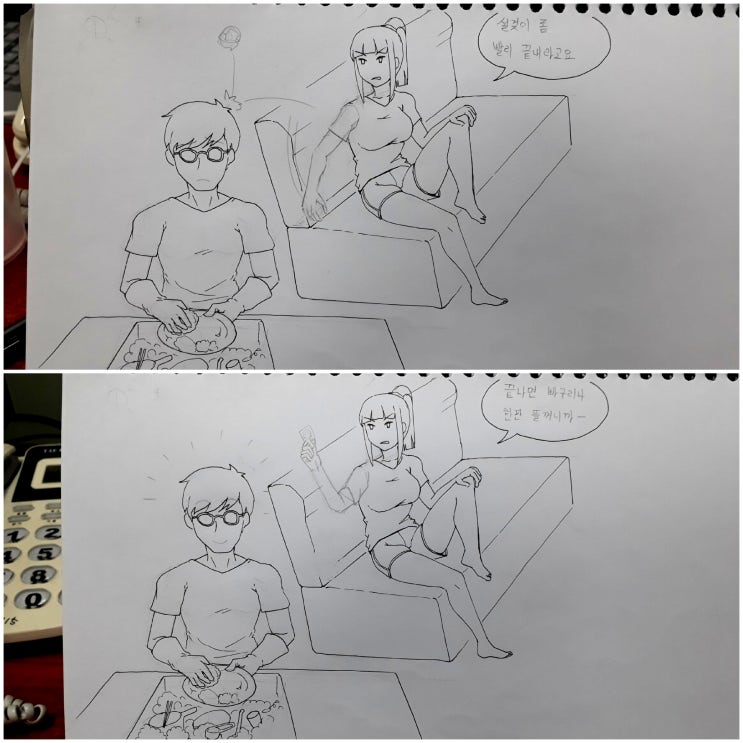 뭐 그릴까하다가 친구단톡에서 그림소재 떠올라서 슥슥하면 재밌습니다