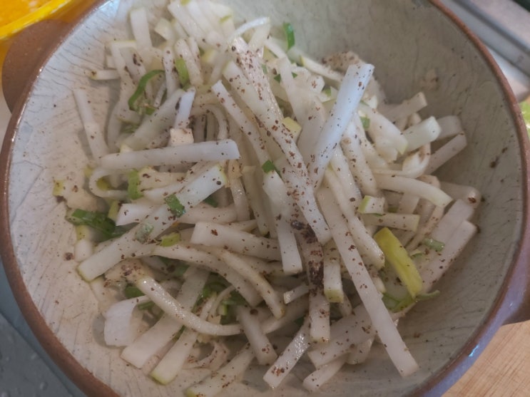 지난번 따뜻한 여사님의 전자레인지 무나물 보고 만들었지만 살짝 아쉬운 맛이었다. 이번에는 더 맛있게 돼...
