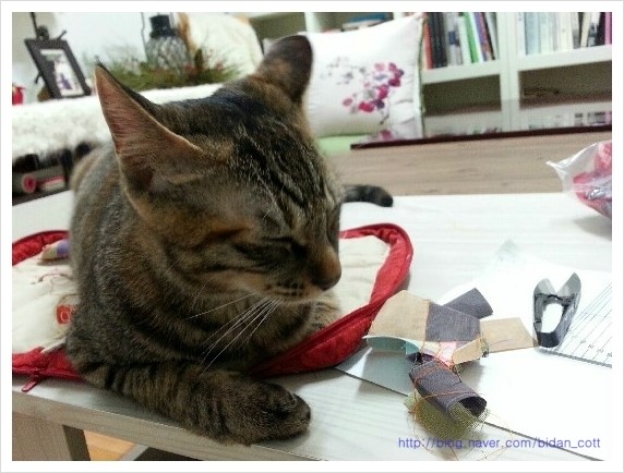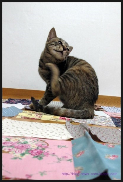 조각들을 펼쳤더니 떡하니 자리를 잡는다. 좀 비켜줄래? 기분 상했는지 얼굴...