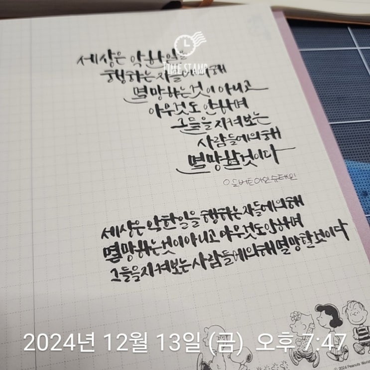 2024.1212 #065 . . #필사스타 #행복필사 #캘리필사 #문장큐레이터 #캘리그라피 . #알버트아인슈타인 #명언...