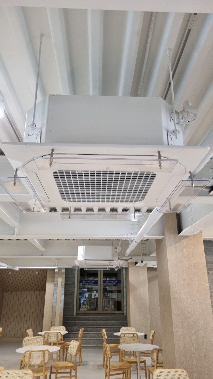 청주 YWCA 건물에 위치한 민들레상회에서 에어컨바람막이 설치 요청을 해주셨습니다 냉난방기를 작동하...