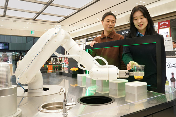 롯데면세점, 김포공항 주류 매장서 로봇 바텐더 선보여