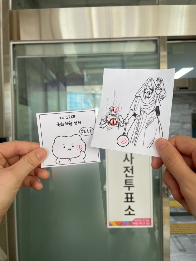 오늘 점심에 22대 국회의원선거 사전투표를 하고 왔다. #총선 #투표인증 나는 귀여운 걸 아주 좋아하는데 ...