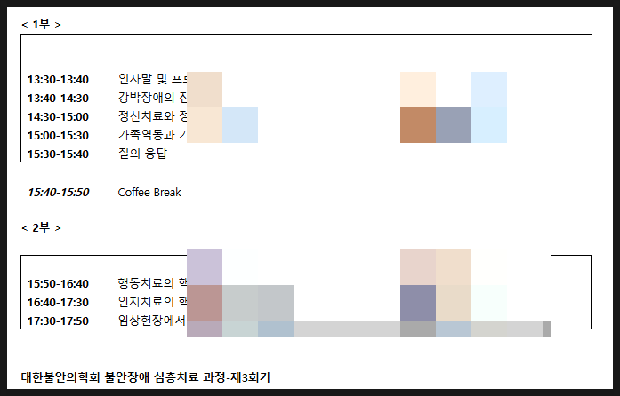 최근, 대한불안의학회에서 진행하는 불안장애 심층치료 과정을 신청해서 듣고 수강하고 있습니다. 이 날은 ...