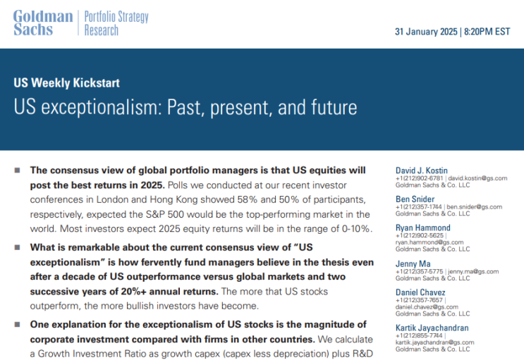 미국 예외주의 고찰 (골드만 US weekly)