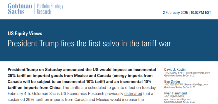 트럼프 관세 미국 증시에 미치는 영향 (골드만 - 데이비드 코스틴)