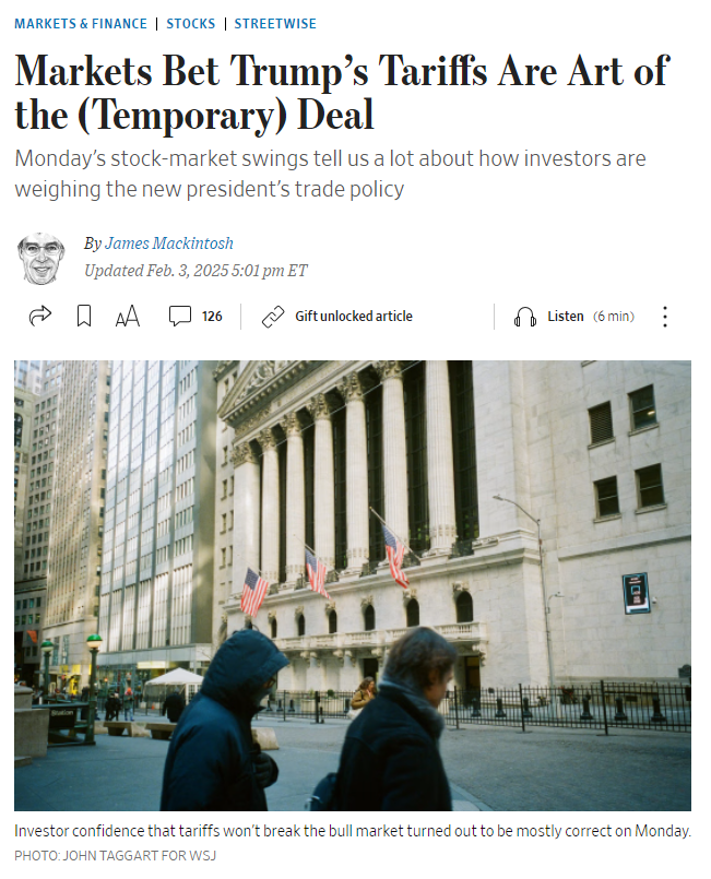 월요일의 시장 반응은 투자자들이 관세가 결국 일시적일 것이라고 확신하고 있음을 보여줌. 또한, 투자자들...