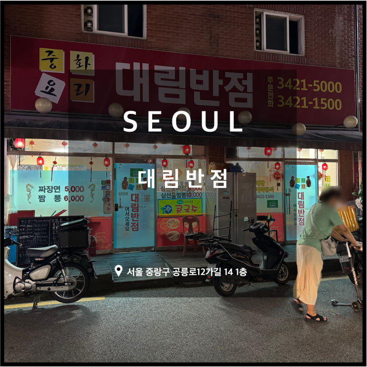외관 매장정보/위치 * 방문시점 : 2024. 08 * 상호명 : 대림반점 * 위치 : 서울 중랑구 공릉로12가길 14 1...